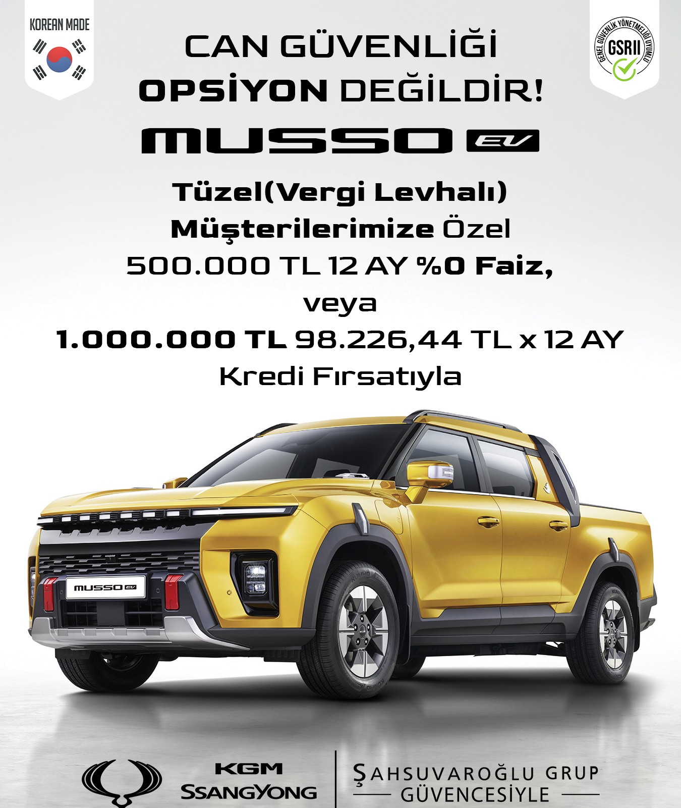 Ticari Müşterilerimiz İçin Musso EV araçlarımızda Geçerli Dev Kredi Kampanyası Kampanya Bitiş Tarihi : 30 Nisan 2026