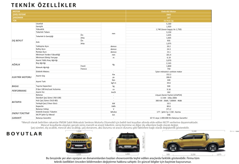 %100 Elektrikli Pick Up